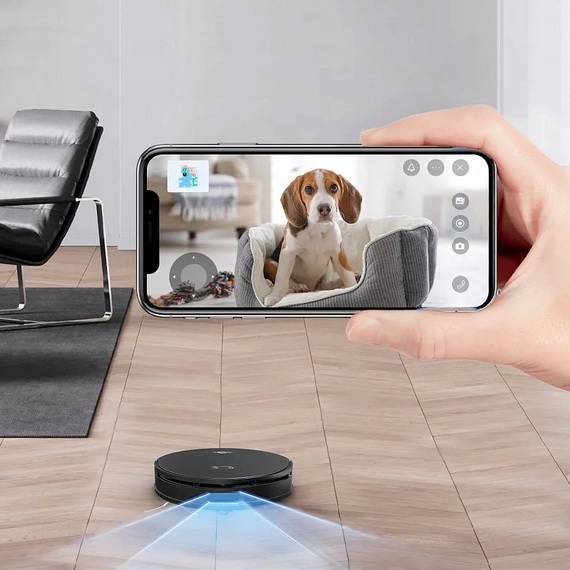 Видеосвязь в режиме реального времени позволяет дистанционно наблюдать за происходящим в доме, с помощью камеры робота-пылесоса. При необходимости камеру можно отключить.