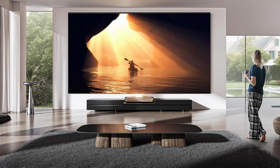 Телевизор проецирует изображение размером от 80 до 200 дюймов, превращая любое пространство в личный кинотеатр. Модель оптимально сочетается с ALR-экраном, который представлен в диагоналях 100, 110, 120, 139 и 150 дюймов и способен воспроизводить кристально чистое изображение при любых условиях освещения.