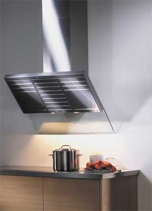 Компания Miele предлагает кухонную вытяжку DA 289 (рис. 23), которая дает хозяйке свободу движений над панелью конфорок. Весь корпус вытяжки из отшлифованной матовой нержавеющей стали расположен под углом, благодаря этому она не будет бросать тени на голову и плечи. Снизу к металлической части вытяжки примыкает откидной экран из однослойного безопасного стекла. Благодаря амортизатору можно легко и мягко передвинуть стекло вперед, что облегчает чистку вытяжки. Стальные фильтры можно легко снять и вымыть в посудомоечной машине.