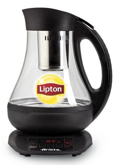 Вообще, внешний вид приборов очень важен, ведь требования к эстетика сегодня занимают далеко не последнее место. Да и не секрет, что некоторые покупатели ориентируются в первую очередь на дизайн. Возможно, именно поэтому чайники со стеклянными колбами пользуются неизменной популярностью. Пузырьки закипающей воды создают завораживающее зрелище, тем самым создавая атмосферу умиротворения и настраивая на грядущее чаепитие. Именно так выглядит чаеварка Ariete 2894. Почему чаеварка? Потому что здесь предусмотрена возможность заваривания как чайного листа, так и пакетиков, а также приготовления глинтвейна с самым настоящим вином. Заварка или специи размещаются в специальном отсеке внутри колбы чайника – это удобно, и не надо использовать дополнительную посуду. Кстати, данная модель получила признание от лидера чайного рынка в нашей стране – об этом весьма красноречиво свидетельствует логотип Lipton.