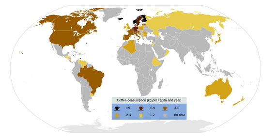 Мировая статистика потребления кофе (кг на душу населения в год)