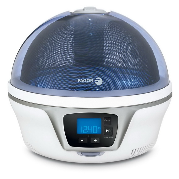 - Такой микроволновки вы еще не видели! Представьте себе – яркий цвет и какая-то космическая форма корпуса! Недаром коммерческое название модели Fagor SPOUT-28UV – «Спутник». У округлой формы есть и техническое преимущество: возможность полного обзора, на 360°. Еще эта печь Фагор снабжена удобной автоматической системой открытия крышки, которая даёт полный доступ к приготавливаемому блюду. Панель управления наклонена под углом 45°, что очень удобно.