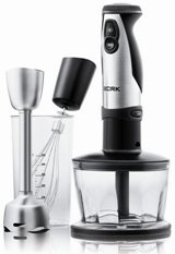 Примером погружного блендера может служить модель HAPTO DD408 от Moulinex — многофункциональный и надежный прибор, выполненный в элегантном современном дизайне и модном цвете «металлик». Корпус и ножка новинки от Moulinex выполнены из нержавеющей стали — практичного материала, гарантирующего, что прибор прослужит вам долгие годы, помогая в приготовлении разнообразных блюд. Из стали же изготовлены и универсальные насадки, входящие в его комплект, в числе которых — нож и два диска для натирки и нарезки продуктов. Это тот необходимый набор «инструментов», который в сочетании с вместительной двухлитровой чашей позволит любому кулинарному мастеру разнообразить свою «гастрономическую палитру».