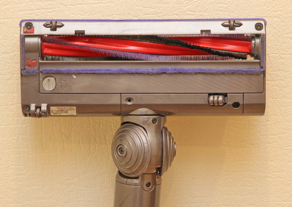 Работа с этим прибором тоже отличается от уборки другими моделями: если их нужно держать действительно как швабру, то здесь имеется пистолетная рукоятка с кнопкой в виде курка. Она мгновенно включает и отключает пылесос, поэтому заряд аккумулятора используется рационально и только для уборки. Масса пылесоса большей частью сконцентрирована в области основного блока, то есть практически у вас в руках, поэтому трубку с насадкой легко опустить к полу или высоко поднять к очищаемому объекту. Здесь, в основном блоке, находится «сердце» пылесоса: компактный электромотор Dyson V6с цифровым управлением, частота вращения вала которон составляет 110 000 об./мин.