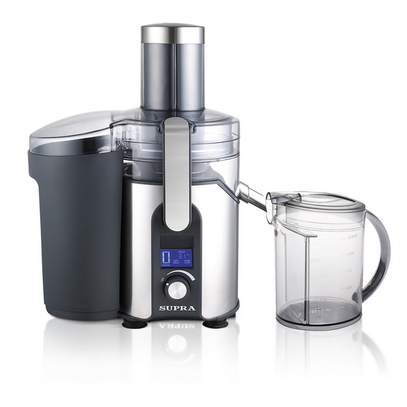 Идем по нарастающей: перед нами соковыжималка Supra JES-2040 мощностью 850 Вт и стоимостью 3 300 … 3 500 руб. Прибор с электронным управлением на корпусе и светодиодным дисплеем имеет целых пять скоростей – на выбор для любых овощей или фруктов. Достаточно вместительны ёмкости прибора: контейнер для сока – 1,25 л, контейнер для мякоти – 2,0 л. Металлический фильтр обеспечивает максимально эффективный отжим (кстати, серебристый корпус сделан из нержавеющей стали). Важный плюс этой модели от Супра – низкий уровень шума при работе.