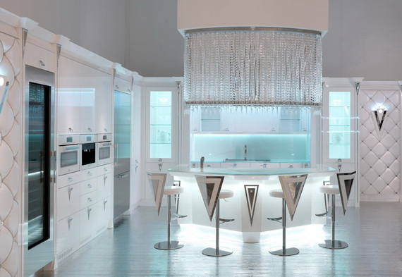 Классические модели по своей технологической начинке нисколько не отстают от своих современных собратьев. Так, жемчужно-белая кухня Opera, созданная в честь 30-летия марки Brummel Vincenzo Antonuccio & Marilena Calbini, привлекает к себе внимание уникальным сочетанием роскоши и современных технологий. Она оснащена многочисленными механизмами, делающими ее исключительно функциональной: выдвижная вытяжка со шкафом для посуды или встроенным TV; поднимающая столешница острова, под которой тоже прячется стеклянный шкафчик, дверцы ящиков, открывающиеся легким нажатием – все эти технические новинки скрываются за элегантными фасадами.