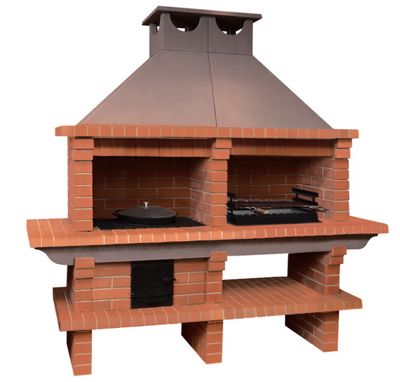 И снова печь-барбекю, но уже более основательная. Она предназначена для приготовления на углях блюд из мяса, рыбы и овощей на гриле, вертеле или шампурах. Устройство рассчитано на использование дров и угля. Внутренние поверхности выложены шамотными плитами, а решетка-гриль, входящая в основной комплект поставки, может располагаться на одном из трех уровней, что позволяет увеличивать или уменьшать расстояние между углем и продуктом.