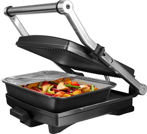 Если лето оказалось дождливым – не беда! Блюда на гриле можно приготовить и в помещении – достаточно обзавестись электрическим грилем. Модель Sinbo SSM 2534 интересна тем, что ее верхней частью можно пользоваться как самостоятельной рабочей поверхностью. Благодаря антипригарному покрытию на ней ничего не пригорит, тем более, что у прибора есть механический регулятор температуры и защита от перегрева.