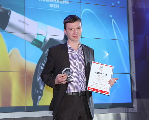 Счастливые моменты церемонии награждения. Премию "Продукт года" получают представители ООО «ЛГ Электроникс РУС» за СВЧ-печь LG Mendini MH6342BMS...