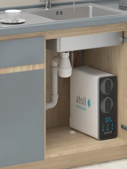 Прямоточная система обратного осмоса Atoll Twist 800 объединяет в компактном корпусе передовые технологии получения чистой питьевой воды. Быстросъемные картриджи международного стандарта Quick-Twist можно менять легким движением руки, не отключая систему. В корпусе установлен малошумный насос, который поддерживает стабильное давление воды. Всеми режимами работы управляет Smart-процессор: он показывает глубину очистки воды, отслеживает оставшийся ресурс и напоминает о необходимости замены картриджей.