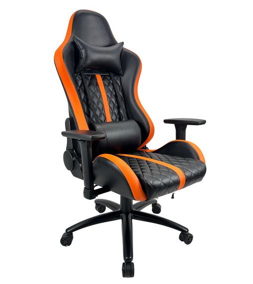 Дизайн кресла выполнен в геймерской тематике, основной черный цвет дополнен яркими оранжевыми полосами. Обивка и наполнитель сделаны из износостойких и легко моющихся материалов – экокожи и поролона.