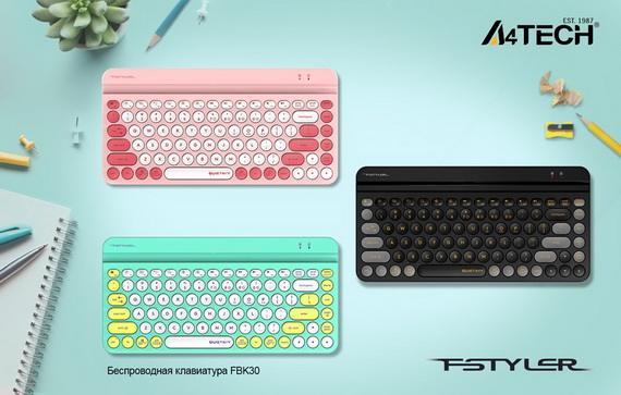 Производитель компьютерной периферии A4Tech расширил ассортимент существующих вариаций беспроводной клавиатуры FBK30 из серии Fstyler. Теперь девайс доступен в черно-сером, зеленом и розовом цветах. Новинки компактны, стильно смотрятся и оснащены обширным арсеналом функций.