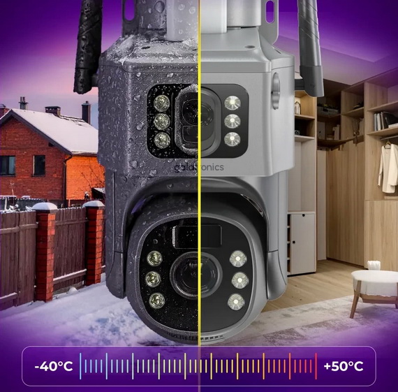 Два объектива обеспечивают панорамный обзор территории с возможностью детального рассмотрения мелких объектов, таких как номера автомобилей или черты лиц. Умная система анализирует изображение с каждого объектива, а интеллектуальный PIR-датчик точно распознает движение человека, исключая ложные срабатывания. Камера автоматически сопровождает движущиеся объекты, сохраняя их изображение резким благодаря системе автофокуса и стабилизации. Ночью включается мощная ИК-подсветка с дальностью до 40 м, а технология DNR обеспечивает четкое изображение без шумов даже в полной темноте.