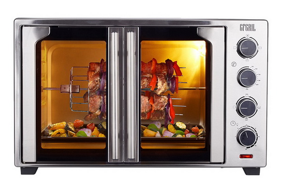 Многофункциональная электрическая мини-печь GFGRIL GFO-90 имеет инновационный дизайн дверок French door, которые открываются одним касанием. Прибор, представляющий собой сочетание духового шкаф и печи, дает возможность запечь или зажарить разнообразные блюда – курицу или рыбу целиком, большую пиццу, большие куски мяса, разнообразную выпечку.