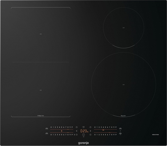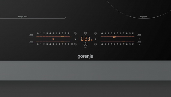 Новая большая конфорка BigZone индукционной варочной панели Gorenje GI6432BSC имеет диаметр 23 см и подходит для больших кастрюль и сковород. Она расположена спереди, чтобы было удобнее следить за приготовлением, и рассчитана на посуду среднего, наиболее часто используемого размера – 23 см. Благодаря этому дно посуды греется по всей площади, и холодных областей не остается.