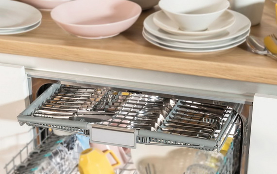 Корзины имеют цветные складные держатели и регулируемую компоновку, чтобы было удобно загружать посуду. Верхняя корзина легко переставляется по высоте между двумя уровнями, и это позволяет поместить в машину даже самые большие кастрюли и тарелки. Держатели для тарелок в нижней корзине складываются, обеспечивая больше места для большой посуды. Для столовых приборов предназначен специальный лоток, где предметы располагаются отдельно, поэтому не царапают другую посуду и полностью высыхают. Разработчики уделили внимание каждой детали, чтобы максимально облегчить мытье посуды.