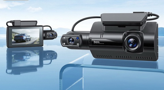 Видеорегистратор Hoco DI07 – компактный прибор, который оснащен двумя камерами, одна из которых вращается вертикально на 360°, что позволяет записывать широкоформатное HD видео происходящего на дороге, а также того, что происходит непосредственно в салоне автомобиля. В приборе имеется G сенсор (датчик удара), есть функции ночного видения (ИК-подсветка) и мониторинга парковки.