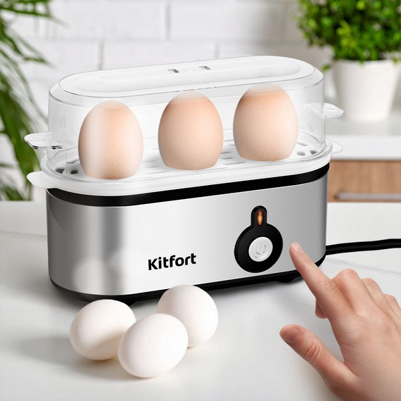 Яйцеварка КТ-6935 предназначена для варки яиц на пару. Кнопка «Вкл/Выкл» включает и выключает устройство, при включении устройства индикатор загорается, при выключении – гаснет. Для приготовления яиц всмятку, в мешочек и вкрутую их необходимо варить определённое время согласно инструкции.