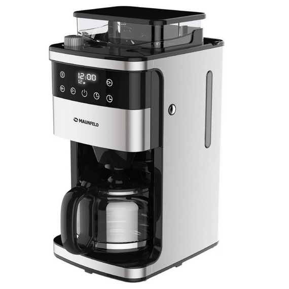 Таймер отложенного старта позволяет запрограммировать включение кофеварки, а сенсорная панель – контролировать все функции прибора: выбор времени готовности кофе, крепость напитка и помол зерен.