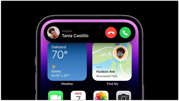 Старшая модель iPhone 14 Pro выйдет в четырех цветах. Аппарат использует новый вырез для показа уведомлений и анимаций iOS, который называется Dynamic Island. Разработчикам сторонних приложений будет доступна кастомизация этой новой зоны.
