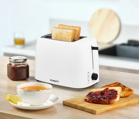 Scarlett представляет новый тостер SC-TM11032 – помощник в приготовлении завтраков для всей семьи. Мощность 800 Вт обеспечивает быстрый нагрев прибора, сводя время прожарки тостов к минимуму. Всего за 2 минуты получаются аппетитные, подрумяненные тосты, а за 4 минуты – тост с поджаренной корочкой. Регулировку степени прожарки можно выбрать самостоятельно – всего предусмотрено семь уровней равномерной прожарки. Функция «автоцентрирования тостов» автоматически разместит тост ровно по центру для равномерного распределения мощности нагревательных элементов.
