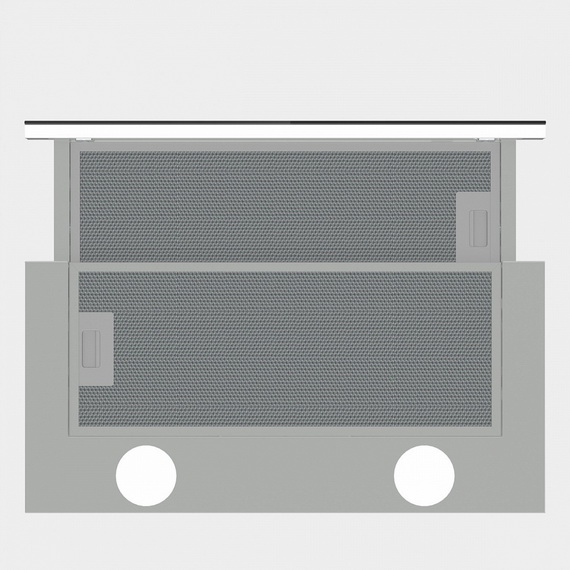 Освещение рабочей зоны осуществляется двумя светодиодными лампами. Вытяжка оснащена выдвижной панелью, что позволяет увеличить площадь захвата воздуха, улучшая качество очистки.