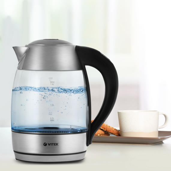 Стильный электрический чайник VITEK VT-7047 имеет корпус из термостойкого стекла объемом 1,8 л, декорированный стальными элементами. Прибор мощностью 2200 Вт в считанные минуты вскипятит воду или нагреет ее до нужной температуры.