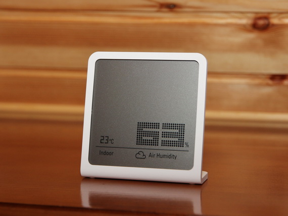 Гигрометр Selina показывает исходные параметры воздуха в доме до начала работы с пылесосами: температура 23 ºС, относительная влажность воздуха 63%