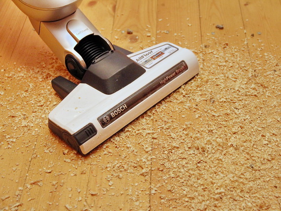 Направляем пылесос на тестовый мусор – обильный слой опилок
