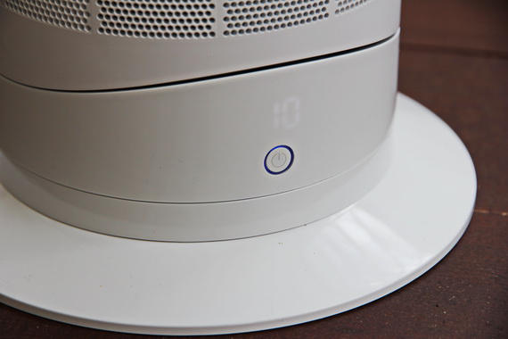 В нижней части нового тепловентилятора осталась только кнопка включения – все остальные манипуляции выполняются с пульта. Молочно-белый индикатор отображает, например, уровень скорости (ступени от 1 до 10).