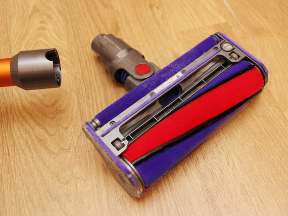 Как и в предыдущих моделях аккумуляторных пылесосов Dyson, в новинке используются насадка с прямым приводом и насадка Fluffy с мягким валиком (слева), но теперь они оснащены защелками для крепления к трубке
