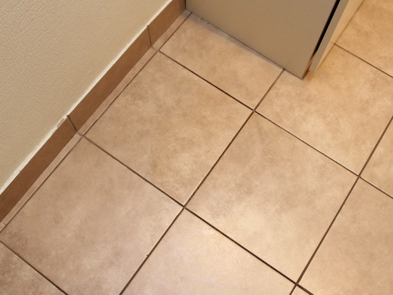 Следующее задание – влажная уборка. Для этого на плитке в коридоре было специально оставлено засохшее пятно от уличной обуви.