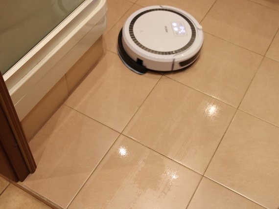 Выполнив влажную уборку в коридоре, робот продолжил ее на кухне…