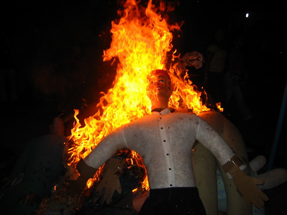 Кстати, в некоторых странах огонь очень часто сопутствует встрече Нового года. Например, в Эквадоре сжигают поролоновых кукол в человеческий рост, причем зачастую для них делают маски политиков или просто неугодных особ.