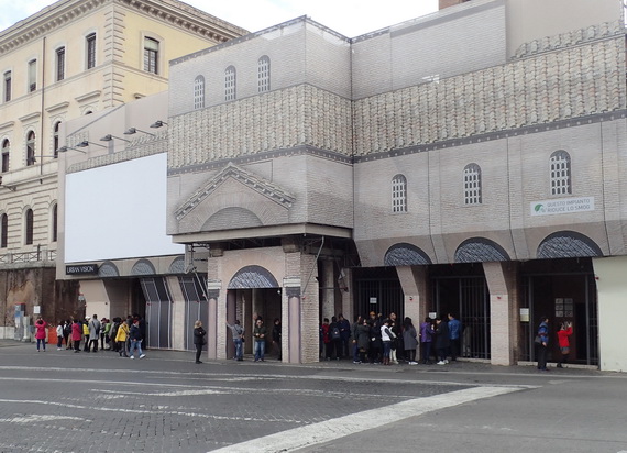 Сейчас базилика на ремонте, ее фасад укрыт защитными панелями, а к «Устам истины» стоит большая очередь в основном из туристов с Дальнего Востока – все они делают селфи с маской Тритона.