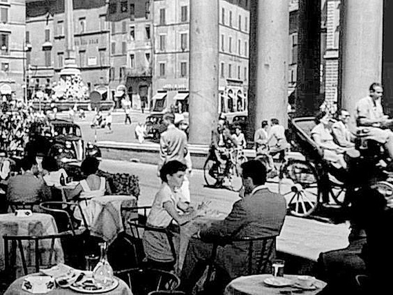 Кадр из фильма: Анна и Джо в кафе у колоннады Пантеона