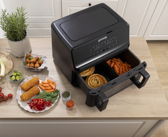 Новый аэрогриль Gorenje AF2700BP позволяет готовить блюда с небольшим количеством масла или без него. Добавления нескольких капель масла достаточно, чтобы приготовить хрустящий запечённый картофель, курицу или луковые кольца. Блюдо получается вкуснее и полезнее, чем еда, приготовленная с большим количеством масла.