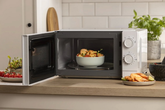 В камере объемом 20 литров без труда помещаются тарелки, миски и небольшая посуда. Постоянное вращение тарелки, на которой размещаются продукты, обеспечивает их эффективный и равномерный нагрев микроволнами, а также равномерное размораживание продуктов без холодных областей. Время размораживания задается встроенным таймером (до 35 минут).
