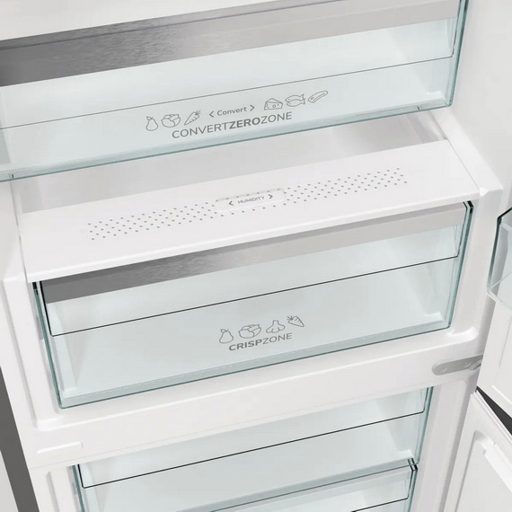Удобный конвертируемый контейнер легко превращается из отделения ZeroZone для свежей рыбы, мяса и сыра в ящик CrispZone для фруктов и овощей, чтобы можно было без проблем разместить все свежие продукты. Контейнер помогает сохранять питательные вещества и продлевает свежесть продуктов благодаря низкой температуре и возможности регулировать уровень влажности.