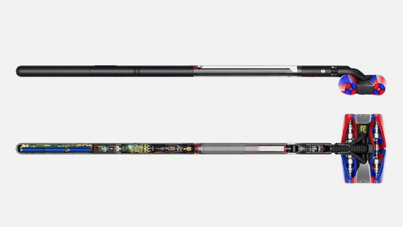 Портативный беспроводной пылесос Dyson PencilVac SV50 FC с полным основанием можно назвать самым тонким в своем классе: прибор массой 1,8 кг имеет диаметр всего 38 мм. Вал миниатюрного электромотора Dyson Hyperdymium, помещенного в ручку пылесоса, развивает до 140 000 оборотов в минуту, создавая мощность всасывания 55 Вт.