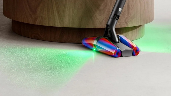 Сверхтонкая конструкция позволяет пылесосу проникать под низкую мебель и в узкие щели, а светодиодные лампы подсвечивают пыль, которую трудно заметить.