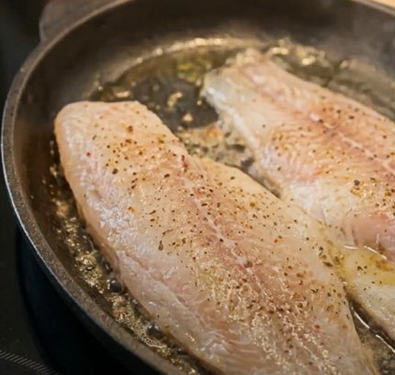 На сковороду налейте две ложки растительного масла. Выложите подсолённое филе клариевого сома шкуркой вниз, обжарьте.