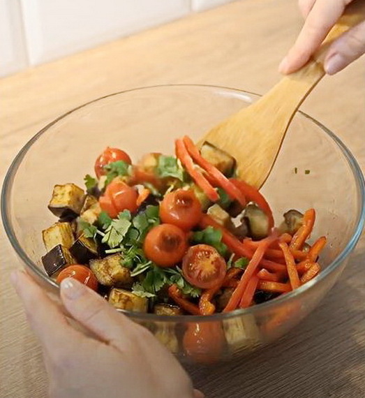 Переложите овощи в миску и хорошо перемешайте.
