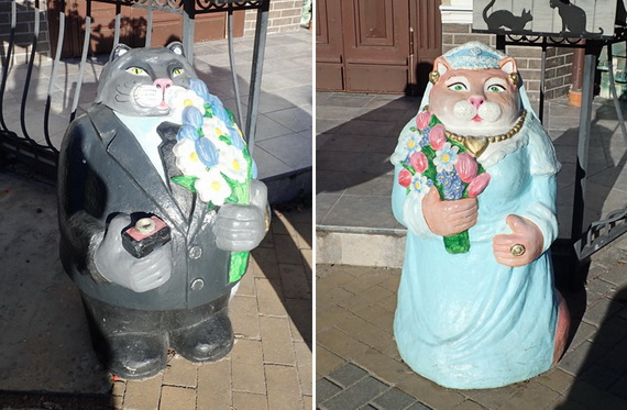 Кот-жених и кошка-невеста у крыльца городского ЗАГСа