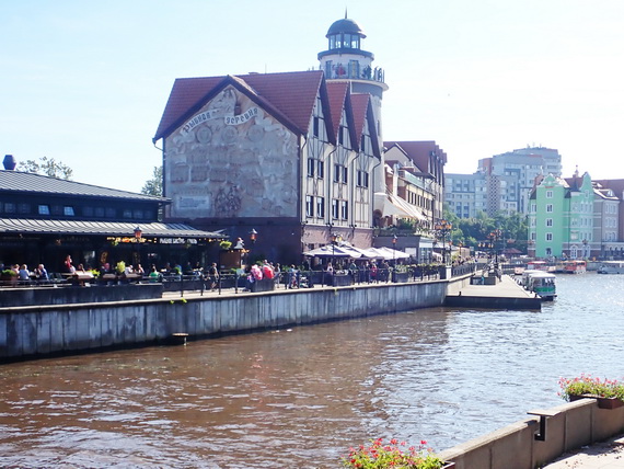 На правом берегу Преголи, между Юбилейным и Медовым мостами, расположена Рыбная деревня – комплекс зданий в стиле фахверк (тип каркасного крестьянского строительства), со смотровой площадкой на башне высотой 33 м, стилизованной под маяк. Район включает в себя гостиницы, рестораны, офисные и жилые здания, сувенирные магазины, причем это не реконструкция исторических домов на их подлинном месте, а современная стилизация.