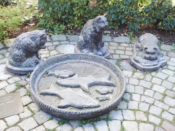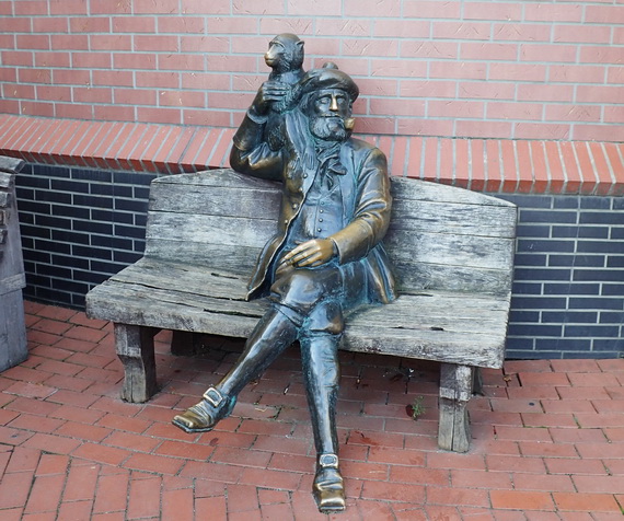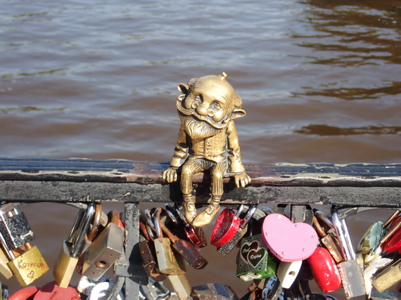 По одному из мостов – Медовому – мы переходим на остров Канта, где расположен Кафедральный собор. И встречаем здесь сидящего на перилах дедушку Карла – первого из калининградских хомлинов, поселившегося на мосту 3 июня 2018 г. Всего хомлинов семь – это семья сказочных существ, напоминающих домовых. Миниатюрные изображения хомлинов расположены в разных уголках города, рядом с основными туристическими достопримечательностями. Авторы идеи – дизайнер-декоратор Наталья Шевченко и её муж Сергей Шевченко, художник и архитектор. А изготовил бронзовые фигурки скульптор Андрей Следков.