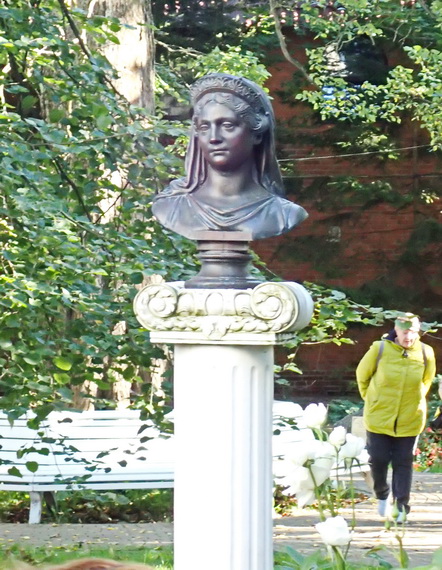 «Моё королевство в мире ином» – эти слова королевы Луизы высечены на каменном листе, установленном рядом с бюстом.