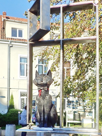 «Памятник зеленоградским котам»: арт-объект в виде оконной рамы с кошкой на подоконнике, установленной на вращающемся механизме