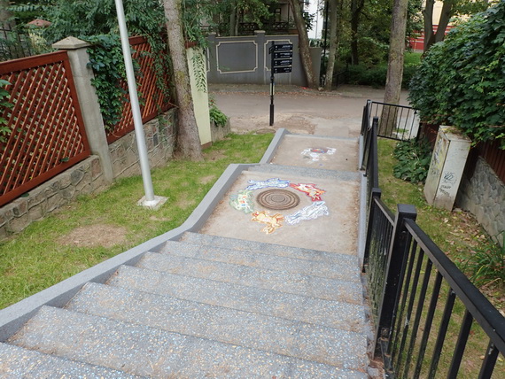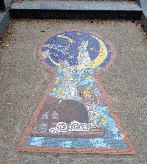 На ступенях лестницы, окруженной старинными виллами, выложены мозаичные изображения зайцев, придуманные Алексеем и Серафимой Москаевыми и реализованные Натальей Новиковой. Это часть городского проекта «Мозаичный путь», а МоЗайки – символы светлогорского туристического маршрута. В формате квеста они расположены в самых красивых атмосферных местах. Жители и гости города могут не только гулять по популярным маршрутам, но и открывать для себя новые уголки Светлогорска и его окрестностей.