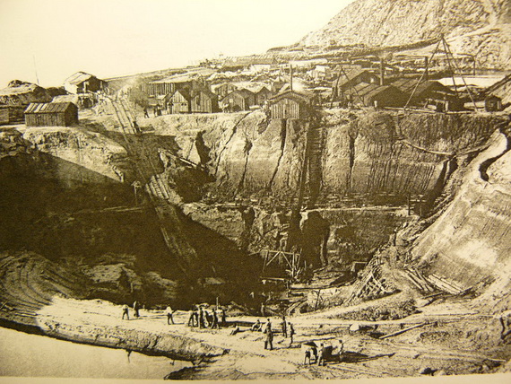 Добыча янтаря из карьера рядом с Пальмникеном, 1874 г.